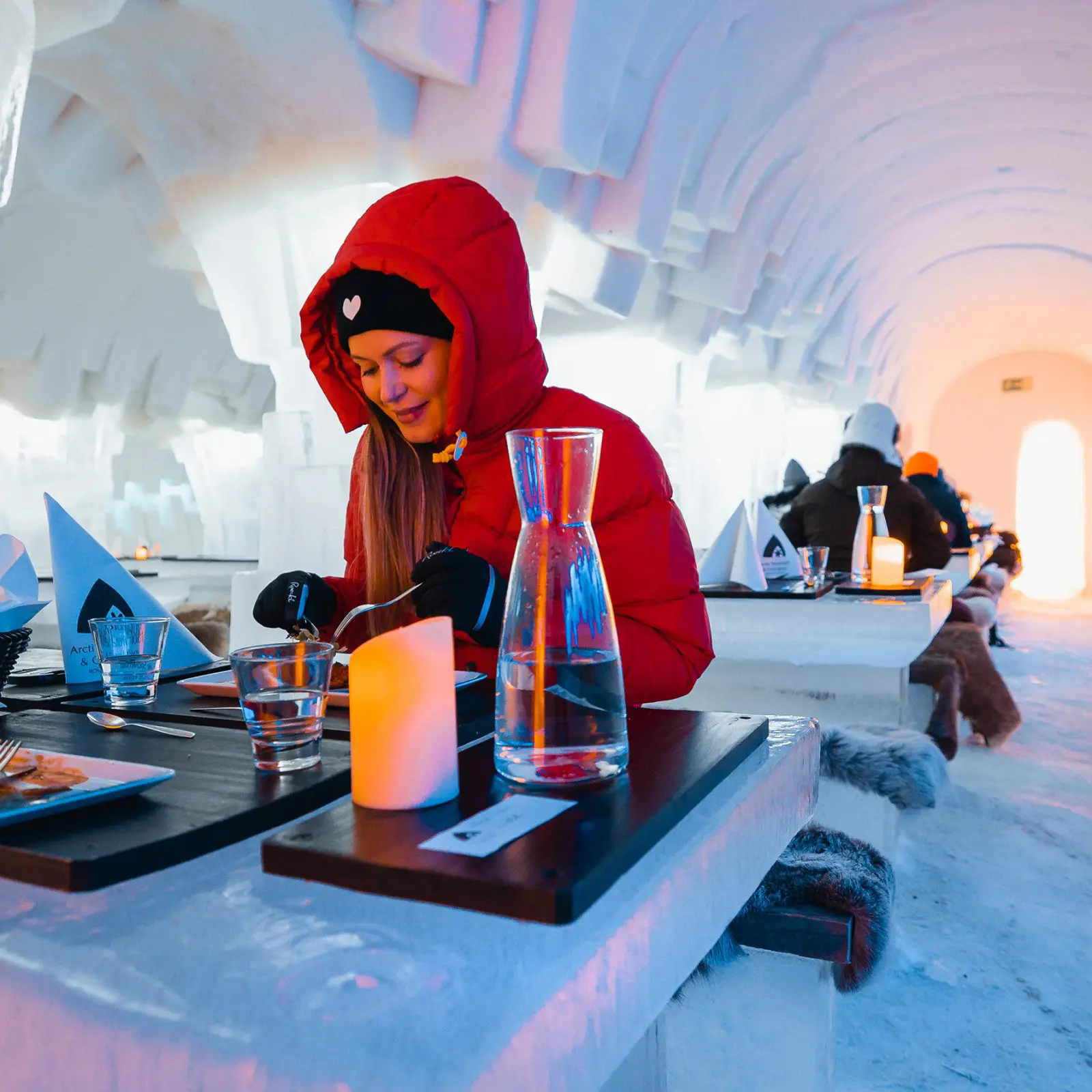 Coolest things to do in Rovaniemi in December – January – February and March. Maximize your visit to the must-see attraction in Rovaniemi with our carefully planned Arctic SnowHotel visiting packages. These seamless experiences let you explore all the cool things our winter wonderland has to offer from December 15th till the end of March. Wander through the awe-inspiring ice hotel rooms, sip a frosty drink from a glass made entirely of ice at the Ice Bar, rejuvenate in the unique Snow Sauna, and savor mouthwatering meals at either the warm Kota Restaurant or the stunning Ice Restaurant.