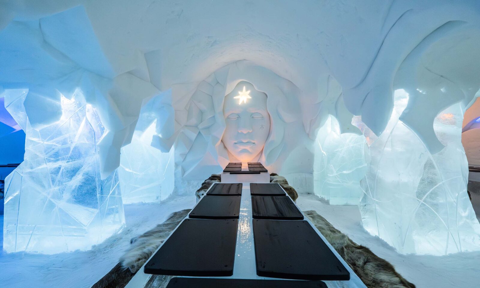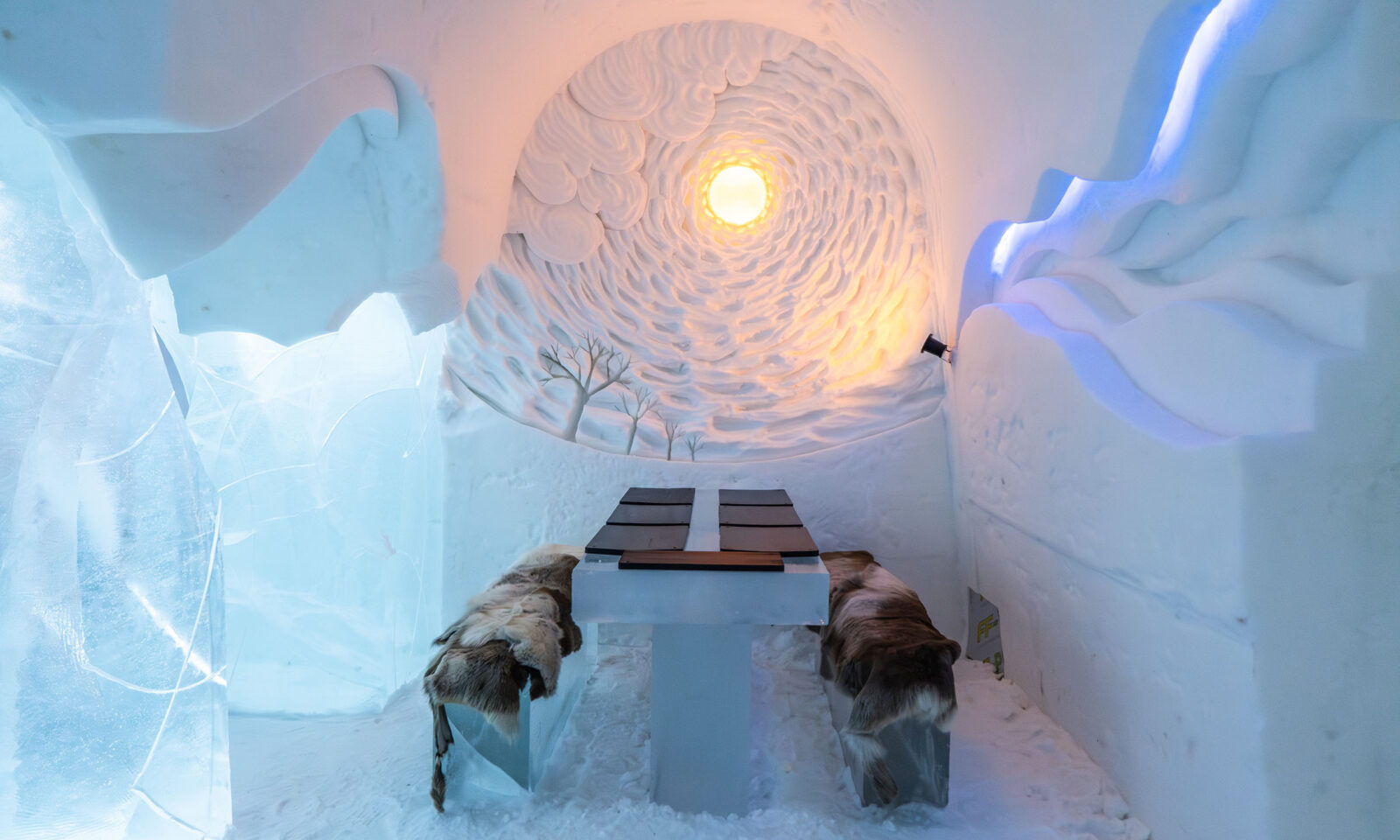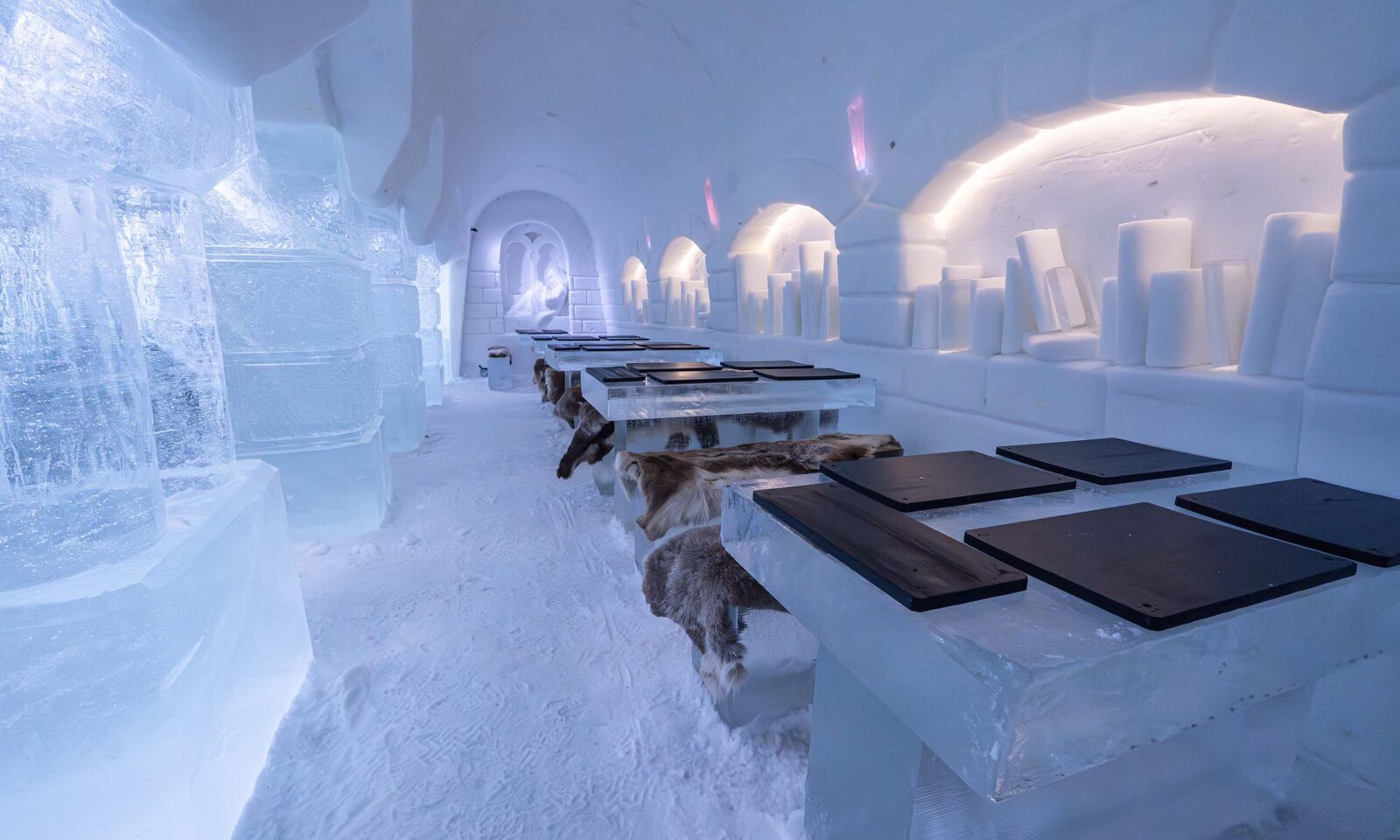 Photograph the handcrafted details of this masterpiece and feel the warmth of a delicious meal served to you at an ice table.