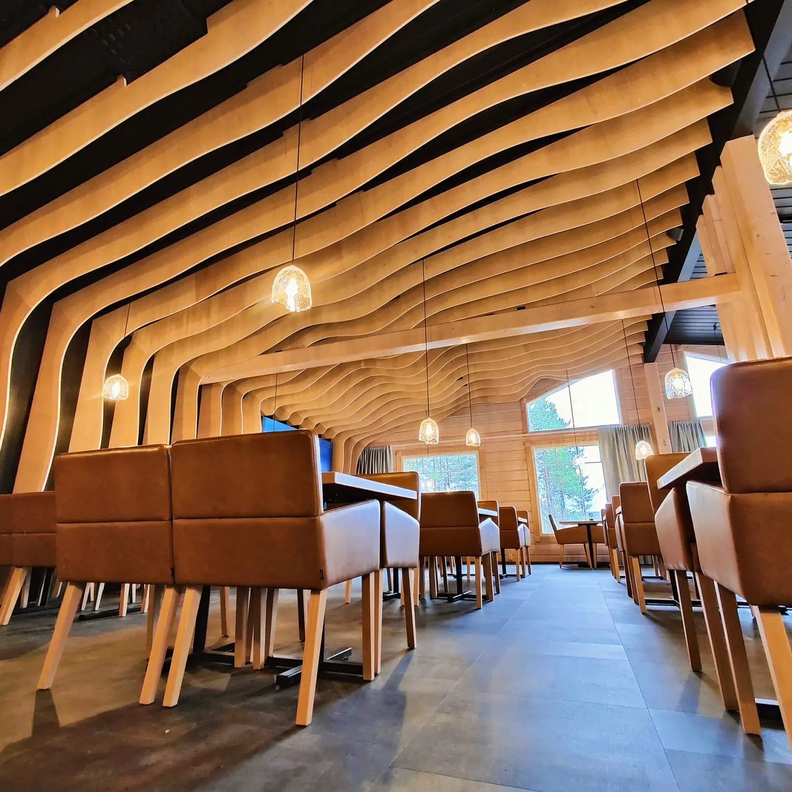 Kun astut sisään Log-ravintolaan, sinua tervehtivät käsityönä valmistetut  ja mittatilaustyönä toteutetut kalusteet sekä pohjoista designia oleva puusisustus. Puiset ravintolan seinät ja suuret ikkunat muodostavat yhdessä valoisan ja erittäin yksilöllisen tilan. Log-ravintola sijaitsee hotellialueen päärakennuksessa, ja sen yhteydessä on myös hotellin vastaanotto. Vastaanottoalueella on myös kuvauksellinen baari, aula rentoutumista varten ja pieni lahjatavarakauppa. Massiivihirsistä tehty rakennus on itsessään jo upea näky.