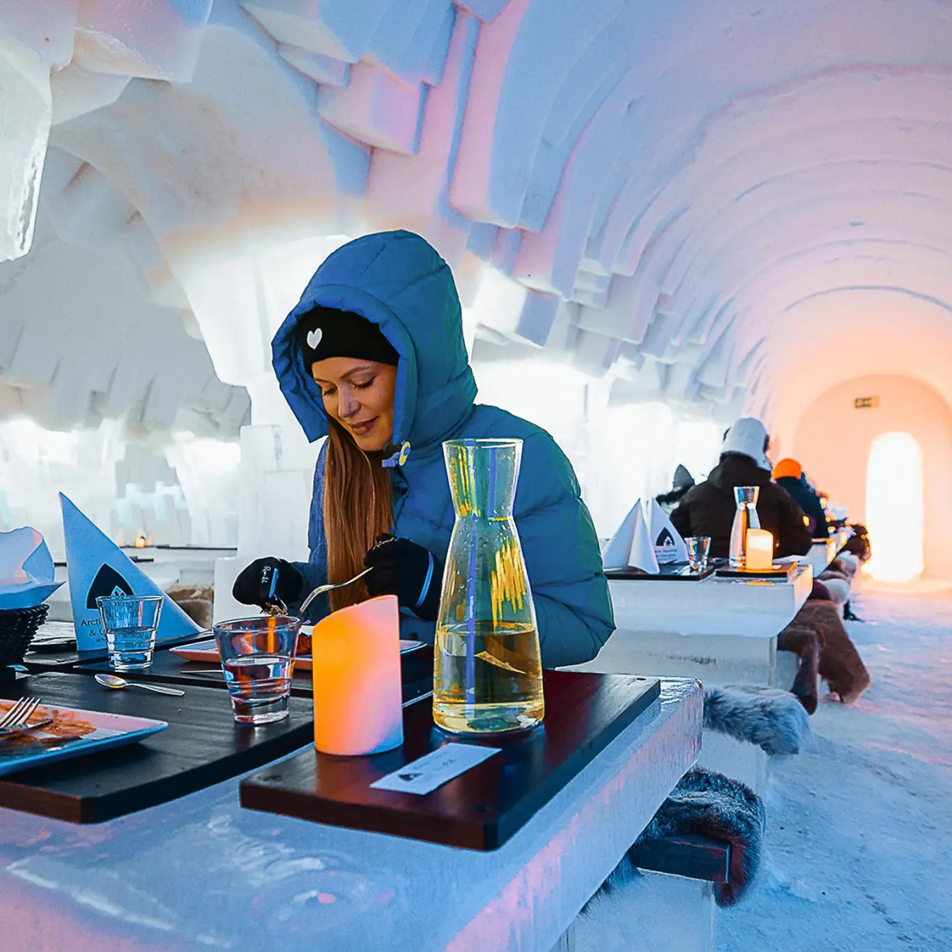 Olemme viileintä, mitä voit tehdä Rovaniemellä talvella. Ota kaikki irti tästä ohittamattomasta nähtävyydestä huolellisesti laadittujen vierailupakettien avulla. Vaeltele lumi- ja jäähotellin käytävillä, maistele viileää juomaa jäisestä lasista Jääbaarissa, virkisty ainutlaatuisessa lumisaunassa sekä nautiskele ainutlaatuisista makuelämyksistä lämminhenkisessä Kotaravintolassa tai häikäisevässä Jääravintolassa.